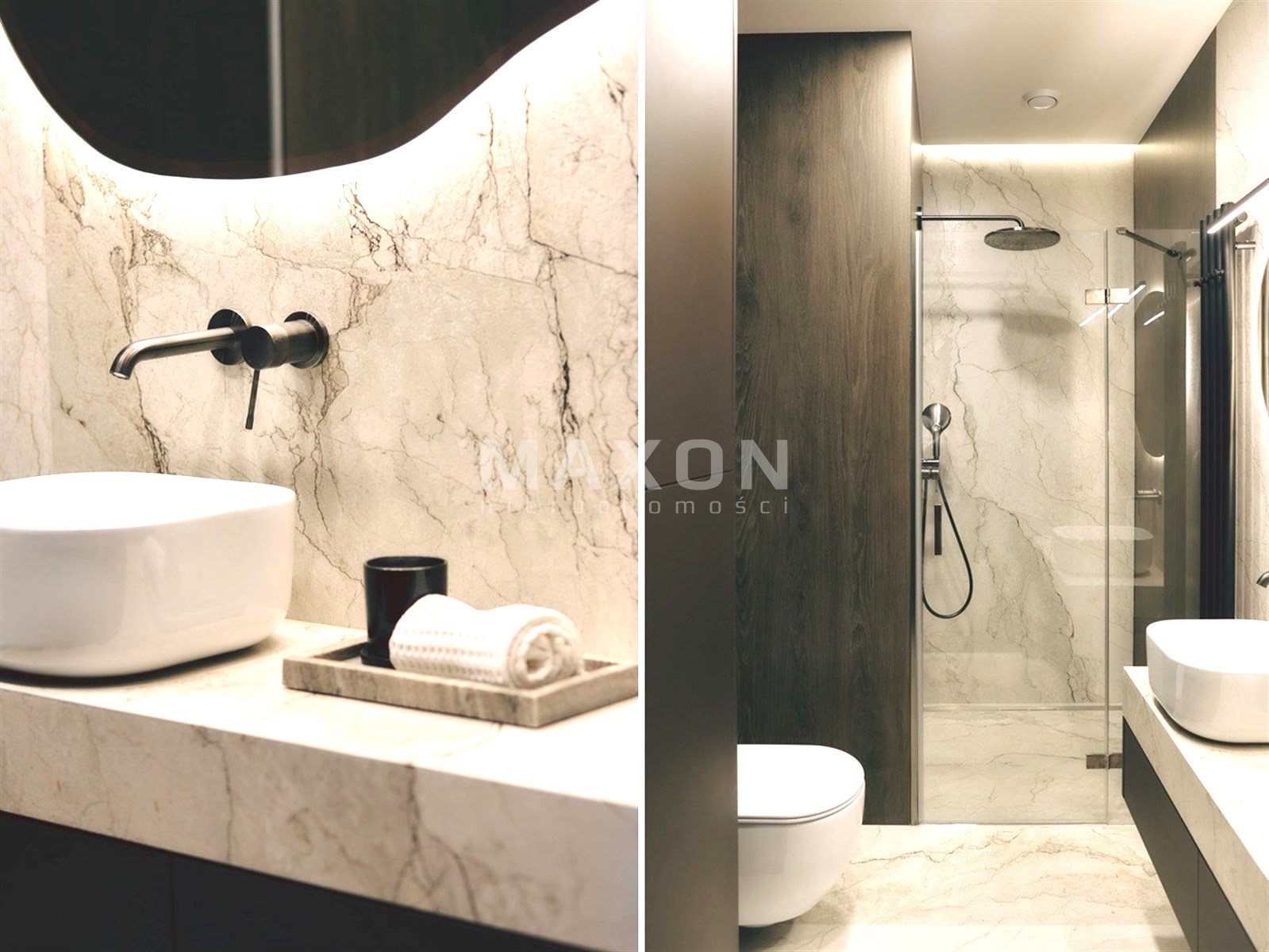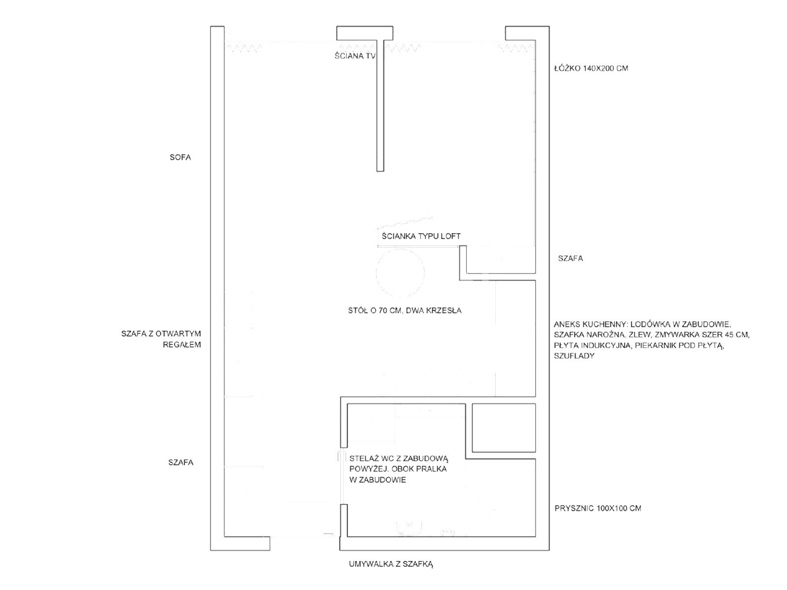 * łazienki wyposażonej w nowoczesny prysznic walk-in, umywalkę, toaletę oraz pralkę.