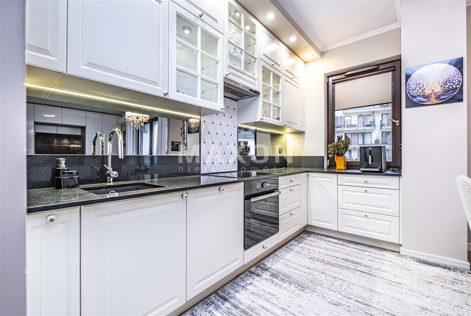 Nieruchomość o powierzchni 69 mkw. znajduje się na 3. piętrze sześciokondygnacyjnego budynku otoczonego zielenią, co zapewnia ciszę i komfort mimo centralnej lokalizacji. Wnętrze zostało zaprojektowane z dbałością o detale, przy użyciu materiałów najwyższej jakości, w tym drewnianej podłogi oraz blatu kuchennego z naturalnego kamienia.