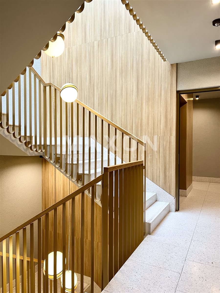 Kameralny 5-kondygnacyjny budynek o dynamicznej bryle z przesuniętych modułów, zapewniający prywatność, balkony i tarasy dachowe z widokiem na Żoliborz oraz kompleks Marymont. Wyposażony w reprezentacyjną klatkę schodową z atrium, garaż podziemny z systemem Klauss, wysokiej jakości okna drewniano-aluminiowe; wnętrza wspólne w skandynawskim stylu z jasnym drewnem i stalowymi detalami.